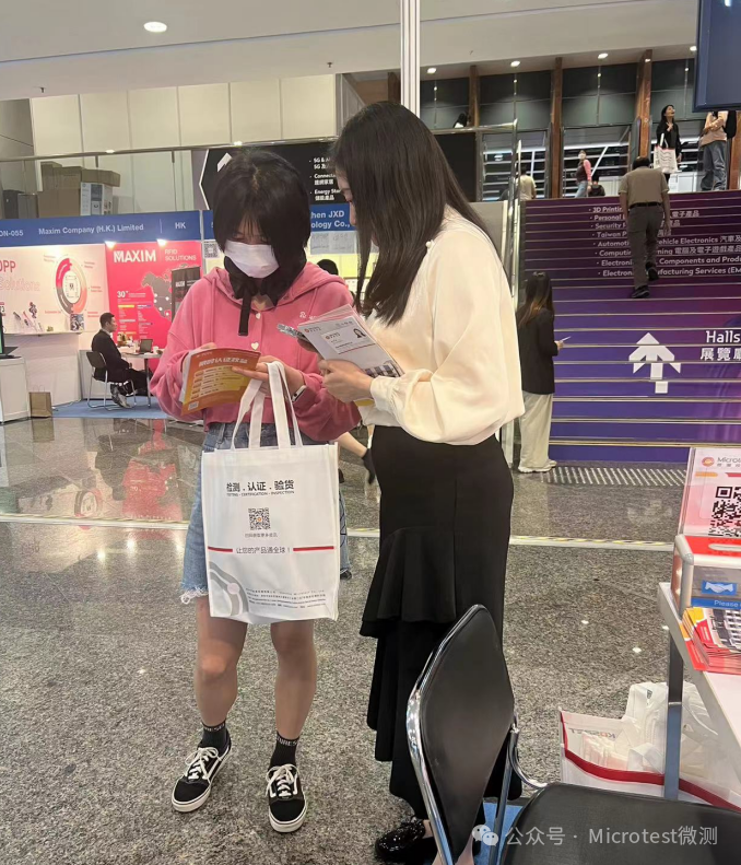 展會現場,我司認證同事為前來微測檢測展位咨詢的客戶一對一答疑解惑,以專業的檢測認證知識和優質的服務給咨詢者留下了良好的印象。