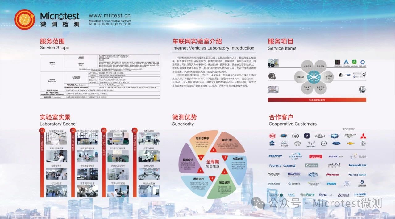 微測檢測作為車聯網檢測的領軍企業,匯聚杰出技術人才,集結行業工程精英,具備領先的車聯網檢測能力,覆蓋性能測試、聲學測試、軟件協議測試、路測系統;同時具備汽車電子EMC、無線射頻、藍牙BQB、無線充Qi等測試能力。微測檢測敏捷高效專案管理,遵守嚴謹的內部品質控管流程,為客戶提供精微的測試結果,從源頭規避檢測風險,縮短產品認證周期。