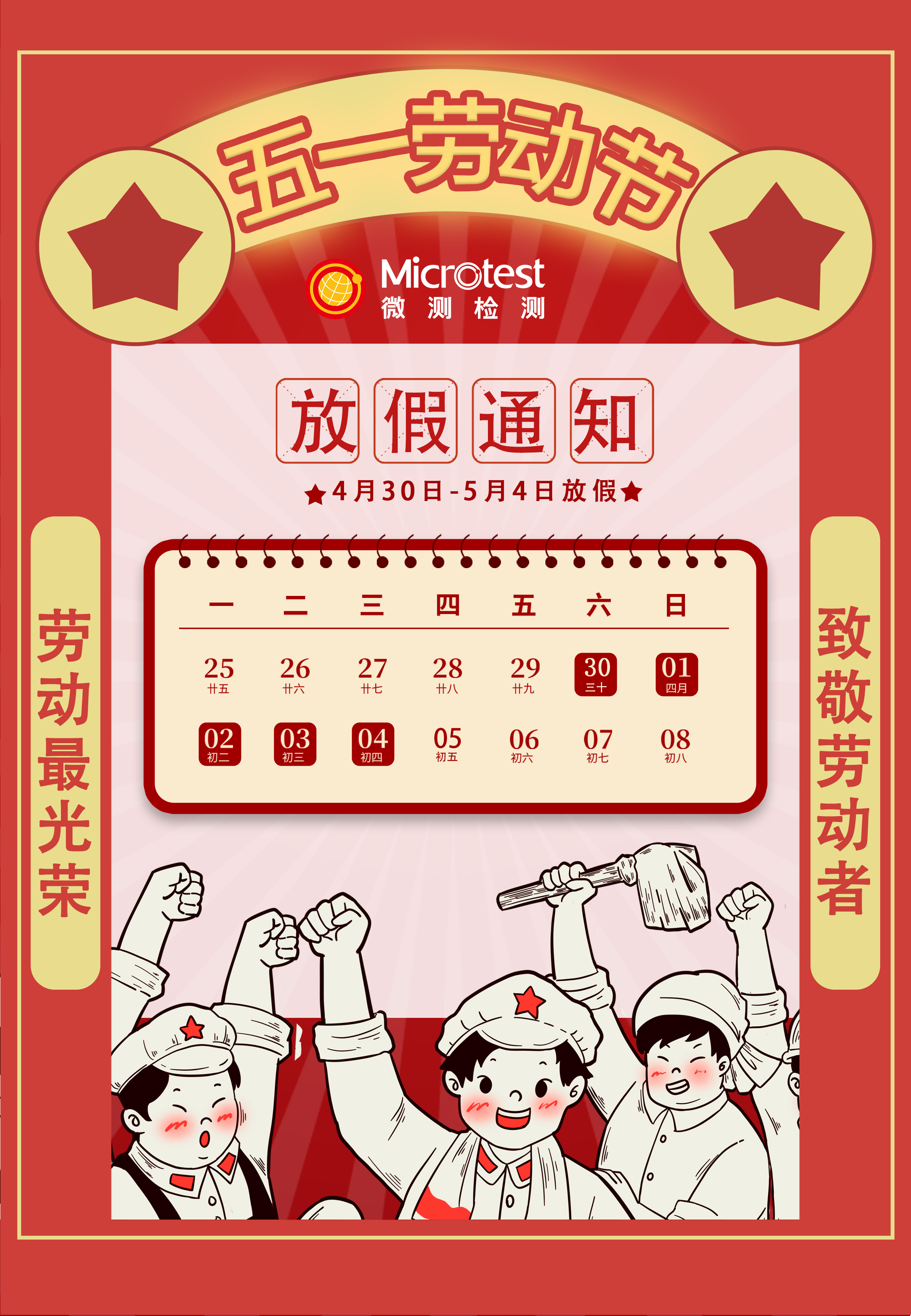 微測檢測五一勞動節放假時間安排如下: