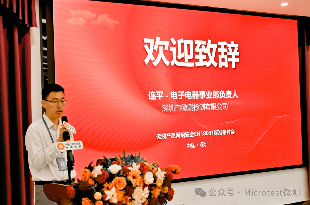 此次活動由深圳市微測檢測有限公司主辦,并邀請到了兩位重磅嘉賓分享關于無線產品網絡安全EN18031標準的最新技術和認證服務流程。這兩位嘉賓分別是:Applus+網絡安全審核員-jack Long;微測檢測-產品中心經理-陳勇;本次活動專項福利官,由微測檢測營銷管理部經理朱馳擔任。