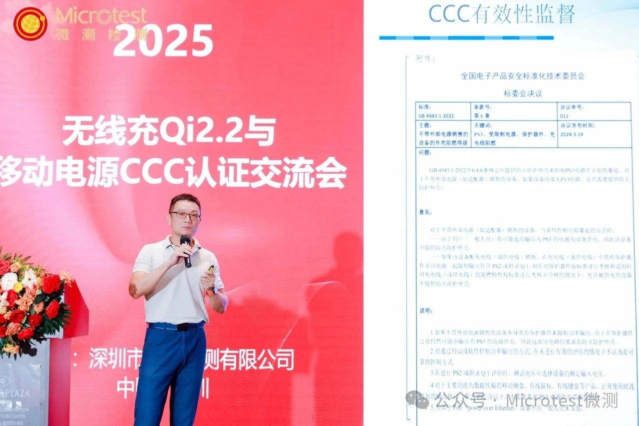 2025年6月6日,由微測檢測聯合東莞質檢中心、充電頭網、紫光鑒權及印度GRL共同主辦的《無線充Qi2.2與移動電源CCC認證交流會》成功召開。本次盛會匯聚了200余家行業領軍企業代表,通過市場趨勢分析、技術標準解讀、GRL現場設備實操演示及專屬認證優惠計劃發布等多元環節,為與會者呈現了一場高規格、高價值的行業交流盛宴,現場反響熱烈,參會企業均表示獲益良多。