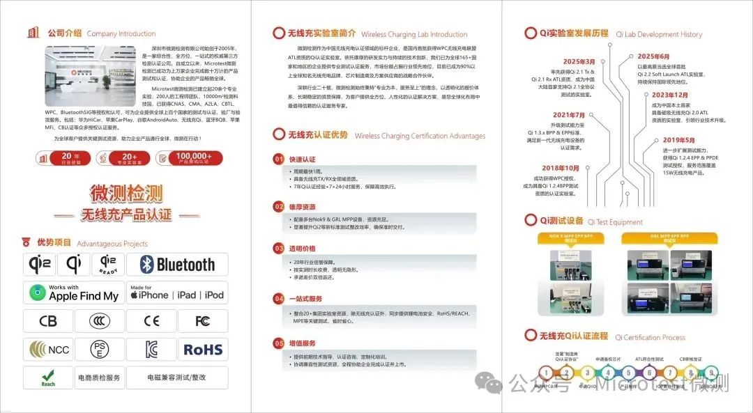 Qi2.2.1支持25W磁吸快速充電,填補(bǔ)Qi標(biāo)準(zhǔn)在更高功率領(lǐng)域的空白,作為最新一代Qi標(biāo)準(zhǔn),對設(shè)備兼容性和能效要求更高。微測檢測的早期參與使申請商能搶占認(rèn)證窗口期,便于企業(yè)產(chǎn)品快速迭代。