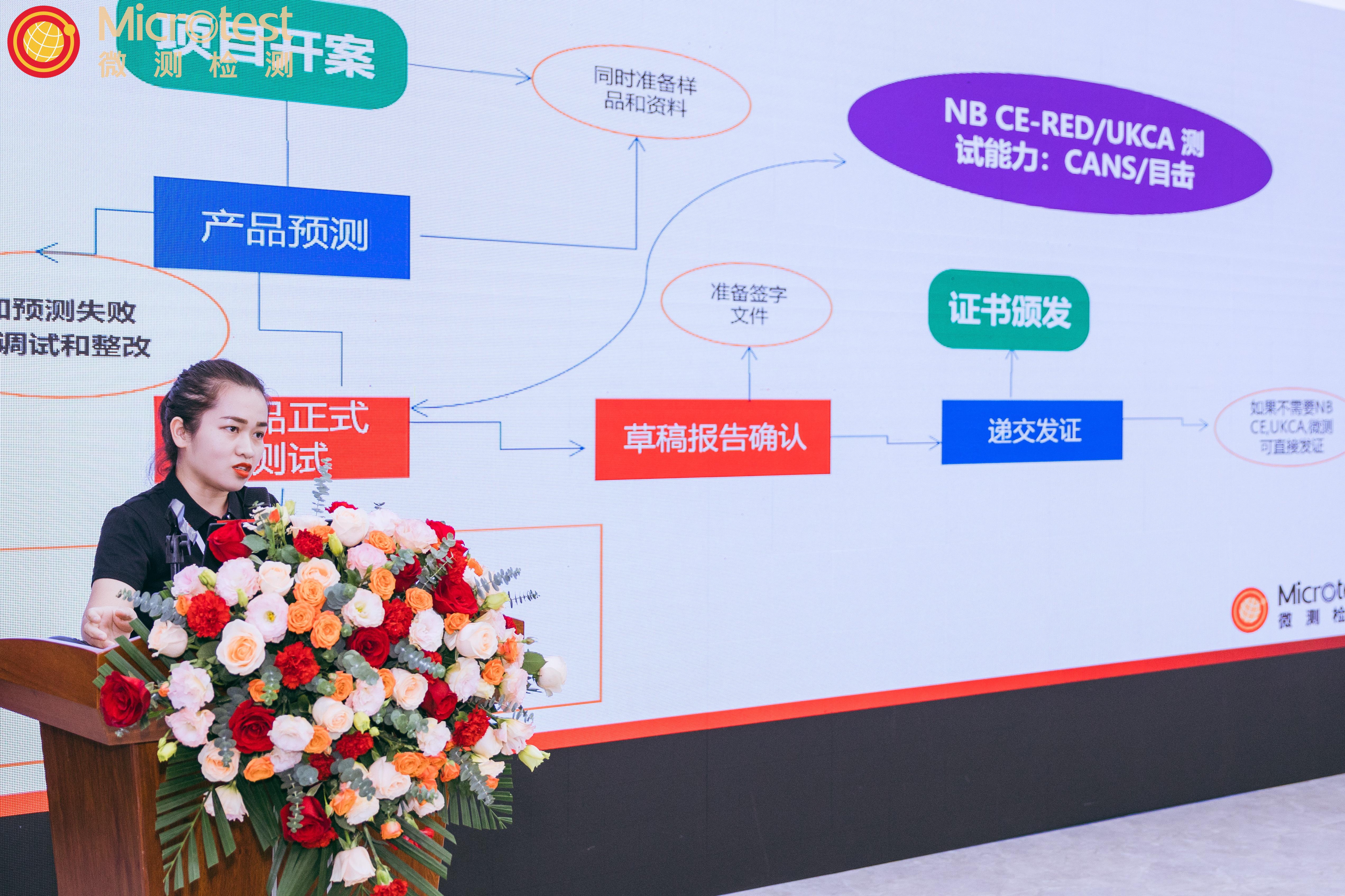 胡榮霞,微測檢測營銷中心總監,從事檢測認證工作超過10年,服務的客戶1000起。主要分享了無線充國際認證的重要性,近兩年來全球越來越多的國家非常關注,消費類電子電器產品法規,尤其是美國、歐盟、亞馬遜,對于消費類電子電器產品法規要求越來越規范,微測檢測也一直在致力于為全求客戶提供關鍵測試資源,協助企業的產品在全球銷售時合規,助力企業產品暢銷全球。為緩解長時間學習疲勞,交流會期間為大家準備了豐富的飲品糕點等茶歇。