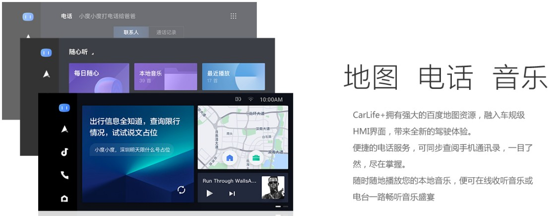 百度Carlife+是百度公司推出的一款手機車機智能互聯產品。只需在車內連接手機,即可將CarLife匯集的車生活服務分享到車載屏幕上,享受駕駛中更安全便捷的車載體驗。